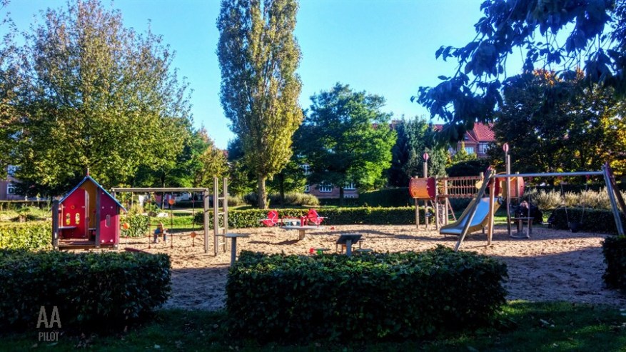 Frederiksbjerg Bypark er en fin lille oase med kreative øer, i form af flere og forskellige legepladser og fitness redskaber.